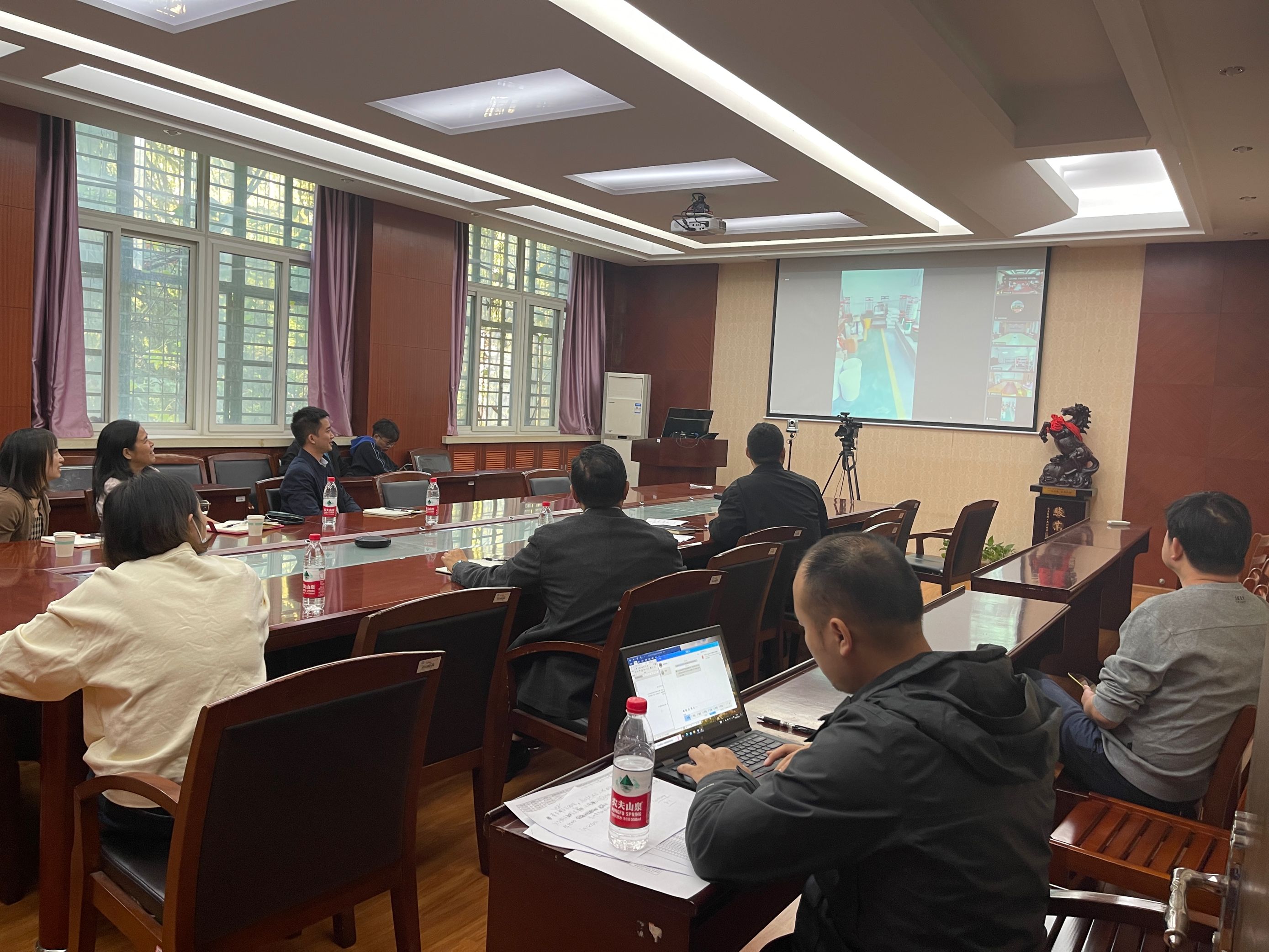 彩排主要由各实验室、会议室负责人调试直播设备、网络信号、光线、参数、角度并进行第一次线上试讲,对讲解时长、站位、路线进行线上演练。