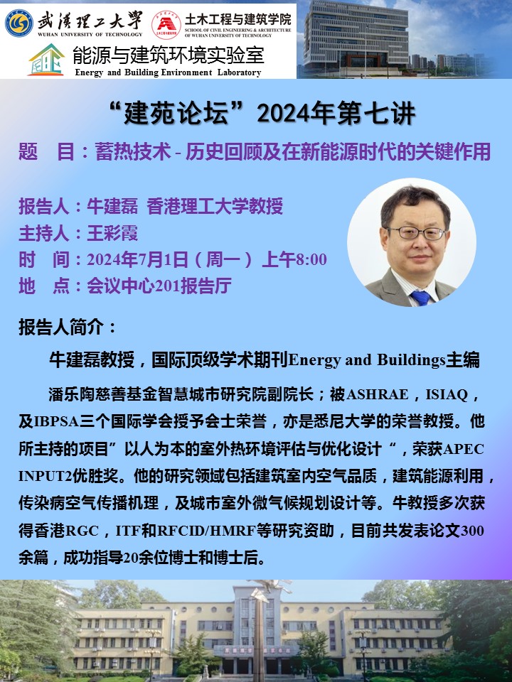 2024年7月1日,香港理工大学牛建磊教授应成人影视片 建环系副主任王彩霞博士邀请来我校讲学。上午8:00,在西院会议中心201报告厅,牛建磊教授为我校师生做了题为“蓄热技术-历史回顾及在新能源时代的关键应用”的学术报告。学术报告会由成人影视片 王彩霞老师主持,我校成人影视片 文远高教授、吴永佳教授、陈琼、严天、周希霖、刘梦阳博士等青年教师以及来自成人影视片 、材料科学与工程学院、信息工程学院、化学化工与生命科学学院等的百余位研究生和本科生参加了学术报告会。