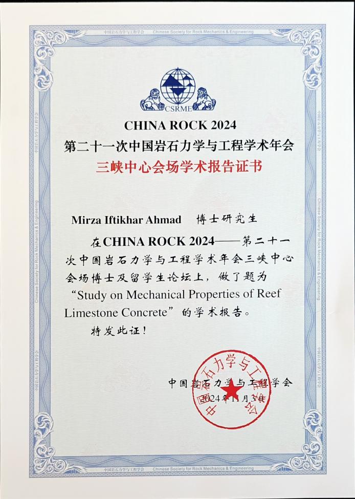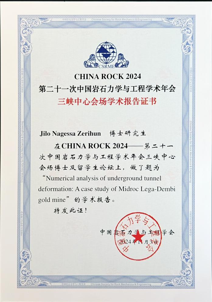 成人影视片 罗忆研究员指导的两名留学博士研究生Mirza Iftikhar Ahmad和Jilo Nagessa Zerihun积极参与了“博士及留学生论坛”,并分别作了题为“Study on mechanical properties of reef limestone concrete”和“Numerical analysis of underground tunnel deformation: A case study of Midroc Lega-Dembi gold mine”的学术分享交流,展示了国际视野下的研究成果,进一步促进了跨文化学术交流和研究合作,提升了成人影视片 在岩石力学领域的学术影响力。