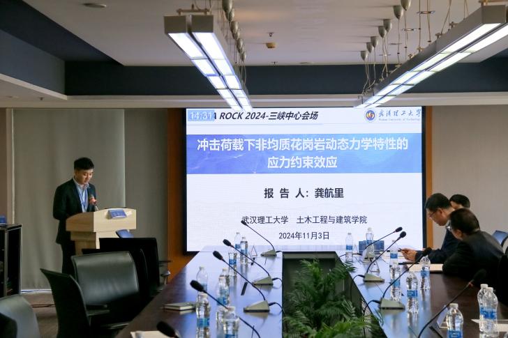 会议设有六个分会场,共进行了80余场主旨报告。成人影视片 副院长罗忆研究员受邀参加“大型通航工程建设与关键技术、大型引调水工程建设与关键技术”分会场,并做了题为“礁灰岩可加固性及锚固体的动态断裂特征研究”的主旨报告,同时主持了下半场的学术报告。成人影视片 在站博士后龚航里参加了“库区地质灾害致灾机理、监测预警与绿色防治”分会场,并做了题为“冲击荷载下非均质花岗岩动态力学特性的应力约束效应”的主旨报告。2024级博士研究生Mirza Iftikhar Ahmad和Jilo Nagessa Zerihun参加了“博士及留学生论坛”,分别做了题为“Study on mechanical properties of reef limestone concrete”和“Numerical analysis of underground tunnel deformation: A case study of Midroc Lega-Dembi gold mine”的学术分享交流。2023级硕士研究生毛子豪参加了“研究生论坛”,并做了题为“动力作用下热处理花岗岩宏细观力学特性与本构模型研究”的学术分享交流。