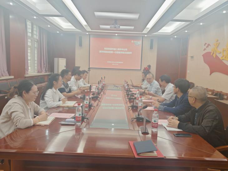 2024年10月16日 ,中国建筑第二工程局有限公司华中公司副总经理贾学军一行来成人影视片 调研交流。吴斌院长和罗忆副院长出席了会议。