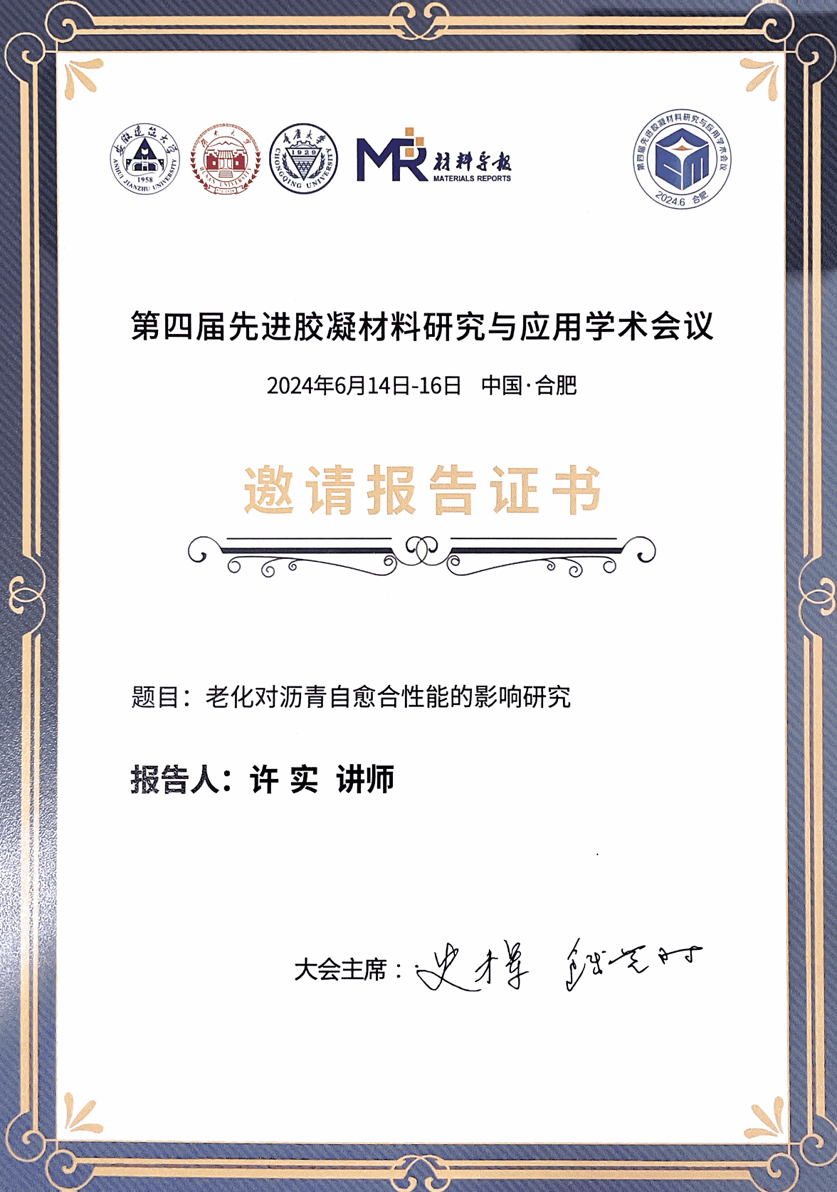 成人影视片 道桥系青年教师许实以《老化对沥青自愈合性能的影响研究》为题参加了本次大会并作邀请报告。许实博士的报告阐述了课题组在沥青自愈合性能领域的研究进展,尤其是不同老化程度、不同改性剂对沥青物理性能、流变性能、化学组成、自愈合性能的影响研究,该报告提出了沥青材料自愈合性能的综合评价与预测方法,对于提升沥青自愈合性能与沥青路面使用寿命有重要的意义,在会议上得到了专家学者的高度关注和认可。