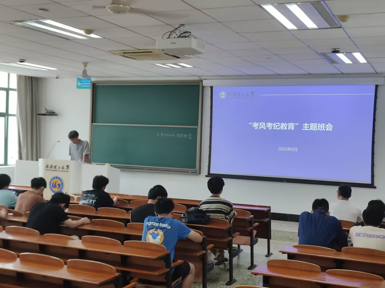 6月11日,为强化考风考纪,营造优良学风环境,提升学生学习效能与互助意识,土木zy2301班在新二204教室开展了以“考风考纪教育”为主题的班会。此次班会由班长余谦主持开展,班主任席瑞杰老师和班级全体成员参加。