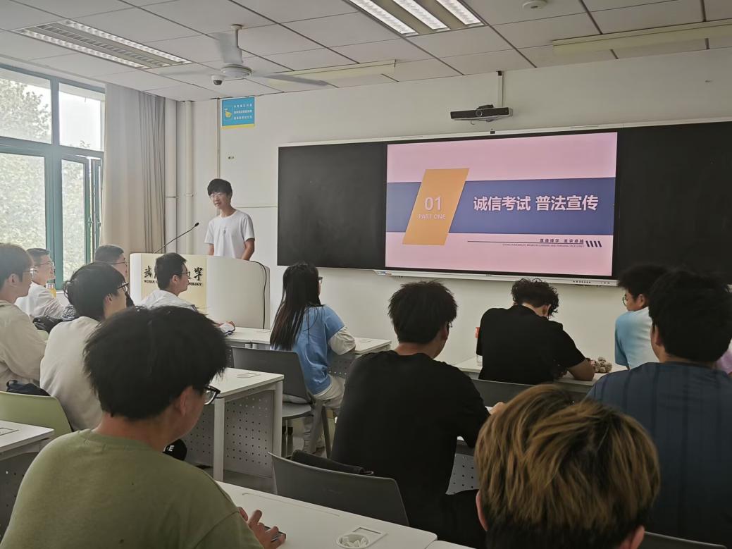 最后,全体同学签署了《诚信考试承诺书》,承诺严格遵守考场纪律,坚决抵制违纪行为。王子旭总结道:“希望同学们以此次班会为契机,端正学习态度,互帮互助,共同营造风清气正的考试环境。”此次班会通过警示教育与正向引导相结合,为期末考试的顺利进行奠定了坚实基础。