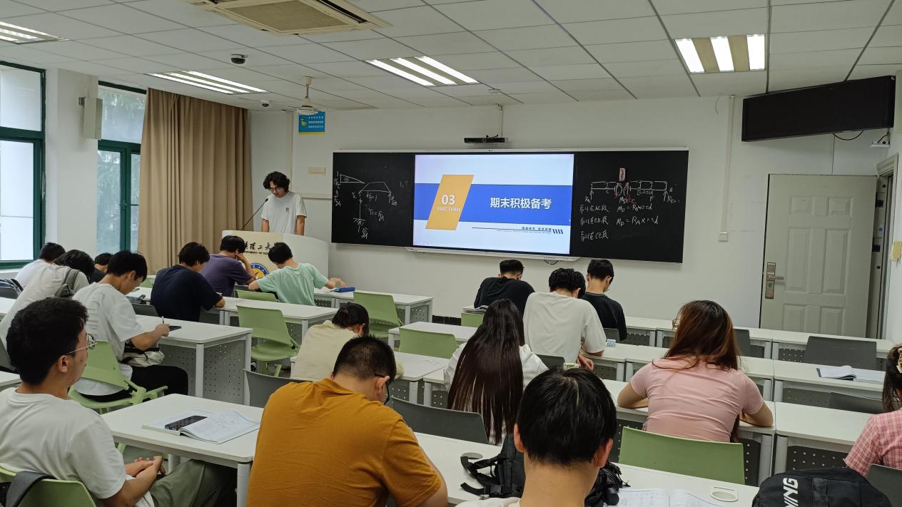 此外,班长公布了近期考试安排,在期末周提醒同学们合理规划复习进度。同时介绍了学校“智能巡课+线下巡考”的人机结合巡查模式,强调考风考纪的严肃性。