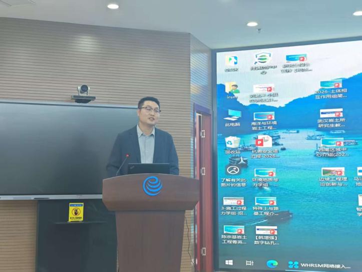 活动伊始,岩土所副所长施锡林在致辞中对学院师生一行来访表示欢迎,他详细介绍了中国科学院武汉岩土力学研究所的整体布局、学科特色、科研团队、重大科研项目及研究生招生培养体系,聚焦岩土工程、岩体力学、环境岩土工程等方向,分享了研究所的创新成果与未来发展规划。。施所长全面介绍了岩土所在岩土工程领域取得的“重大科技成就”,展现了研究所在行业内的科研实力与引领地位;同时重点阐述了岩土所自主创办期刊的重大影响力,彰显了研究所在学术传播、学科建设与国际学术交流中的核心价值。